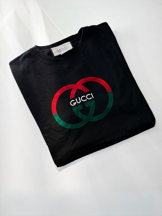 Gucci Black Logo Print Cotton Tshirt - Model: 71758XJF68-1152-S